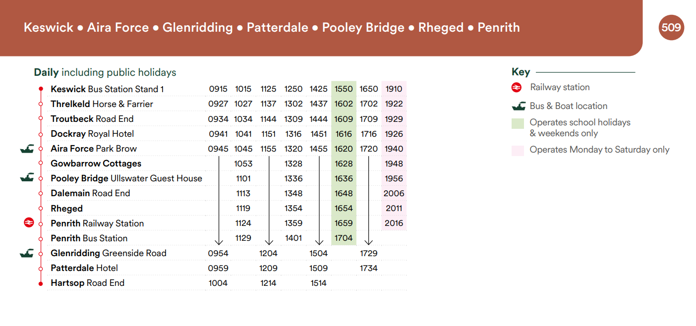 The 509 Bus Route stops at Dalemain at the bottom of the drive if travelling between Keswick, Aira Force, Glenridding, Patterdale, Pooley Bridge, Rheged and Penrith between 23rd March – 1st November 2026.